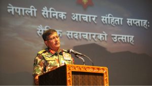 काठमाडौं – प्रधानसेनापति पूर्णचन्द्र थापाले सैनिक आचारसंहिता ०७६ जारी गर्दै कडाइपूर्वक लागू गर्न मातहतका सबै