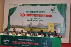 काठमाडौं – शिवम् सिमेन्ट्स लिमिटेडको तेस्रो वािर्षक साधारणसभा सोमबार सम्पन्न भएको छ । कम्पनीका अध्यक्ष