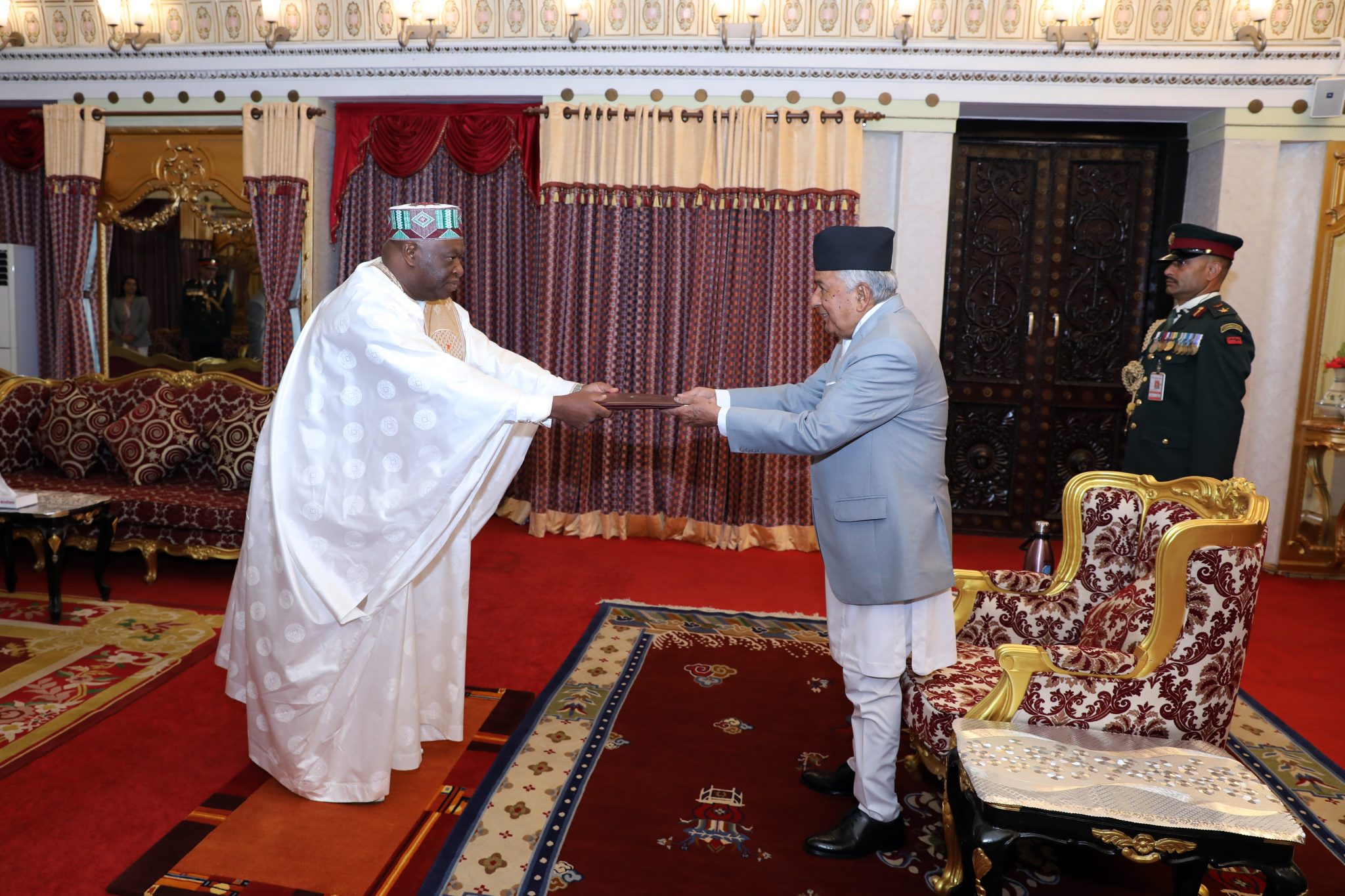 काठमाण्डु – राष्ट्रपति रामचन्द्र पौडेलसमक्ष नेपालका लागि विभिन्न ६ देशका नवनियुक्त गैरआवासीय राजदूतहरूले ओहोदाको प्रमाणपत्र पेश गरेका छन् । राष्ट्रपति भवन शितल निवासमा बिहीबार आयोजित छुट्टाछुट्टै विशेष समारोहमा उनीहरूले ओहोदाको प्रमाणपत्र पेश गरेका राष्ट्रपति कार्यालयले जनाएको छ । ओहोदाको प्रमाणपत्र पेश गर्नेहरूमा गणतन्त्र निगीका अलसान्स कोन्ट, गणतन्त्र युगाण्डाका ज्योसी काकुरामट्सी किकाफोण्डा, बोस्निया तथा हर्जगोभिनाका ह्यारिस…